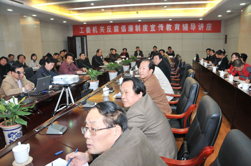 会议首先组织观看了《廉政准则》解读专题辅导片,使大家对《廉政准则》出台的背景、意义及内容等有了深入、全面的了解。工委书记李顺民在会上强调:工委机关全体党员干部一定要提高思想认识,积极参加宣传教育月的各项活动,明确活动目的、内容和要求,明确“六个一”教育活动具体安排,坚持正反两方面教育。要认真贯彻《廉政准则》,提高反腐倡廉的自觉性,坚定理想信念,规范自己的言行,坚持好相关制度。要领导带头,在反腐倡廉建设中发挥好示范表率作用,处以上干部要坚持“一岗双责”,履行好党风廉政建设责任制,严格遵守《廉政准则》各项规定,管好自己、管好家属、带好队伍,不断完善制度,按制度办事,形成用制度管人、管事的工作机制。