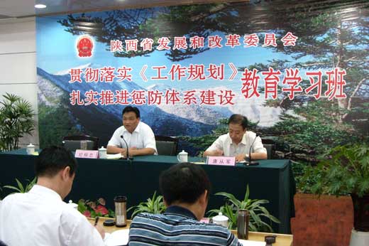 中央《建立健全惩治和预防腐败体系2008—2012年工作规划》颁布后,省发展改革委党组高度重视,为全面贯彻落实中央《工作规划》和省委《实施办法》,8月26日至29日省发展改革委举办了“贯彻落实《工作规划》,扎实推进惩防体系建设”教育学习班,分两批对全委、物价局机关及委(局)属单位处以上312名干部进行培训,省纪委副书记纪相忠出席并讲了话。