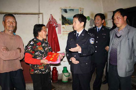 随后,田桦书记在厅监察室副主任陈伟、柞水县公安局负责人、车家河村村支书等陪同下,到定点帮扶的赵辉习老人家中进行走访。详细询问了赵辉习老两口的身体、生活、家庭情况以及存在的困难,并送去慰问金和厅纪委民警捐赠的衣物、书籍以及学生文具等物品。田桦书记嘱咐随行人员,要将这次走访发现的问题进行认真梳理,积极协调,想方设法予以解决。他要求厅纪委同志要经常到帮扶对象家中走访,及时征求对公安工作的意见,了解掌握实际情况,切实帮助群众解决生产、生活中的实际难题,确保“三访三评”、“三问三解”活动取得实实在在的效果。