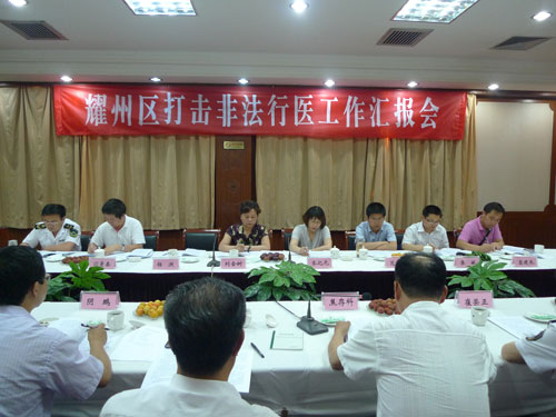 为切实做好我省打击非法无证行医工作,认真落实《陕西省2011年打击非法无证行医专项整治行动方案》,6月29日至30日,纠风室副主任刘金树带领卫生监督部门组成工作组对西安、铜川的“打非”工作进行了督导检查。