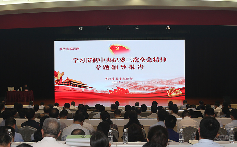 按照省委常委、省纪委书记、省监委主任王兴宁关于大力加强全省纪检监察系统干部教育培训的指示要求,4月25日下午,省纪委监委组织举办辅导报告会,邀请中央纪委国家监委办公厅正局级纪检监察员兼副主任刘硕对十九届中央纪委三次全会精神进行专题辅导。