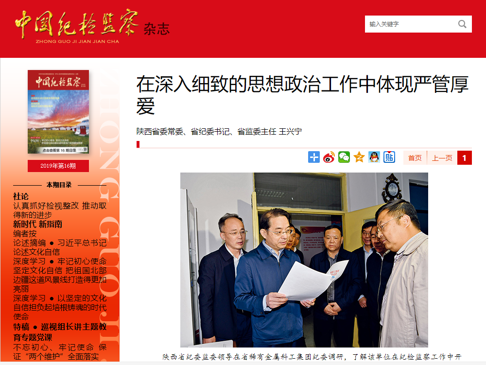 《中国纪检监察》杂志第十六期刊发陕西省委常委、省纪委书记、省监委主任王兴宁署名文章。