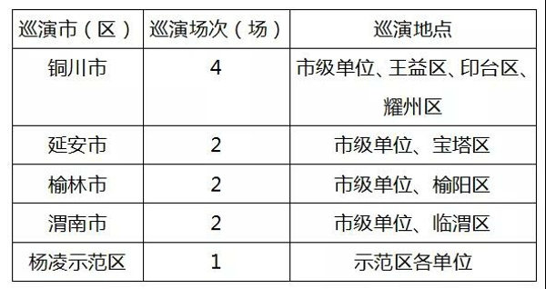 (二)“廉政文化三秦行”文艺演出面向铜川市、延安市、榆林市、渭南市、杨凌示范区演出