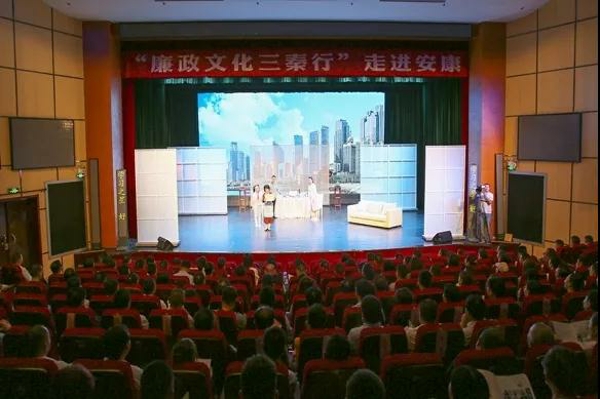 (三)“廉政文化三秦行”文艺演出。演出单位为陕西当代实验话剧研究院。该演出主题鲜明、内容丰富,通过歌曲、小品、音乐剧、情景朗诵等多种形式,传播清正廉洁价值理念,展现勤政廉政精神风貌。