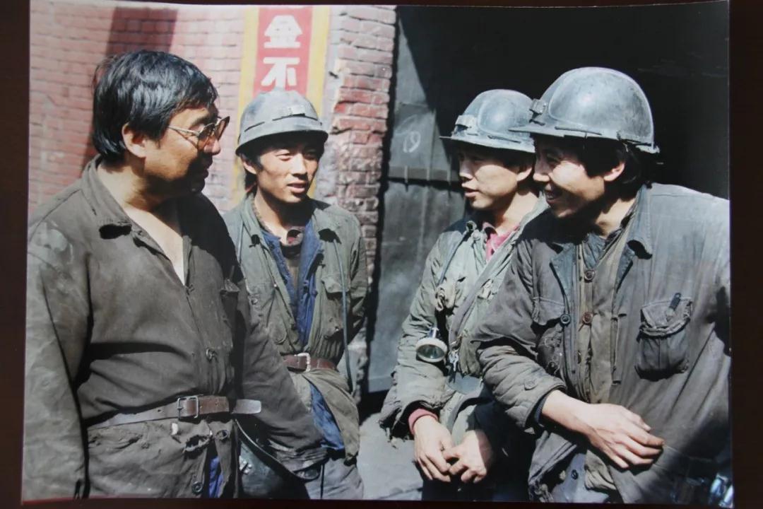 路遥(左一)在铜川煤矿采访 何志铭摄