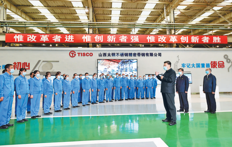 随后,习近平前往太钢不锈钢精密带钢有限公司考察调研。这家企业依托先进生产工艺,以其“超薄、超平、超硬”的产品特性取得快速发展。习近平走进生产车间,察看企业转型升级产品展示,了解企业运行情况。在光亮机组前,习近平饶有兴致地观看了厚度仅有0.02毫米的不锈钢箔材“手撕钢”产品。习近平指出,产品和技术是企业安身立命之本。希望企业在科技创新上再接再厉、勇攀高峰,在支撑先进制造业发展方面迈出新的更大步伐。现在,全国防疫工作进入新阶段,既取得重大战略成果,同时面临外防输入、内防反弹的压力,希望企业不要麻痹松懈,继续抓紧抓实抓细各项防控措施,更好复工复产,做到安全生产、健康生产,把失去的时间抢回来,努力完成今年的目标任务。