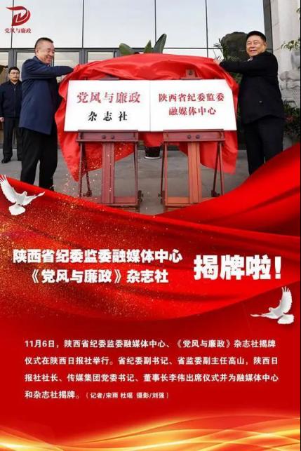 陕西省纪委监委融媒体中心、《党风与廉政》杂志社的揭牌,是我省纪检监察宣传工作和陕西日报发展历程上的一件大事,标志着省纪委监委和陕西日报社的深度合作开启了新的历程,标志着我省党风廉政宣传主阵地建设迈出了新的步伐。明年1月公开发行的《党风与廉政》杂志将以聚焦全面从严治党、党风廉政建设和反腐败斗争中心任务,弘扬社会正气,传播廉政文化,服务陕西纪检监察工作为己任,实现《党风与廉政》杂志、秦风网、秦风网客户端、“陕西纪检监察”微信公众号等宣传平台的全面融合,实行杂志社和融媒体中心合署办公、两块牌子、一套人马,刊网端微“四位一体”的全媒体工作机制,进一步提升纪检监察宣传的质量和水平,为全省纪检监察工作高质量发展提供更加有力的舆论支持。