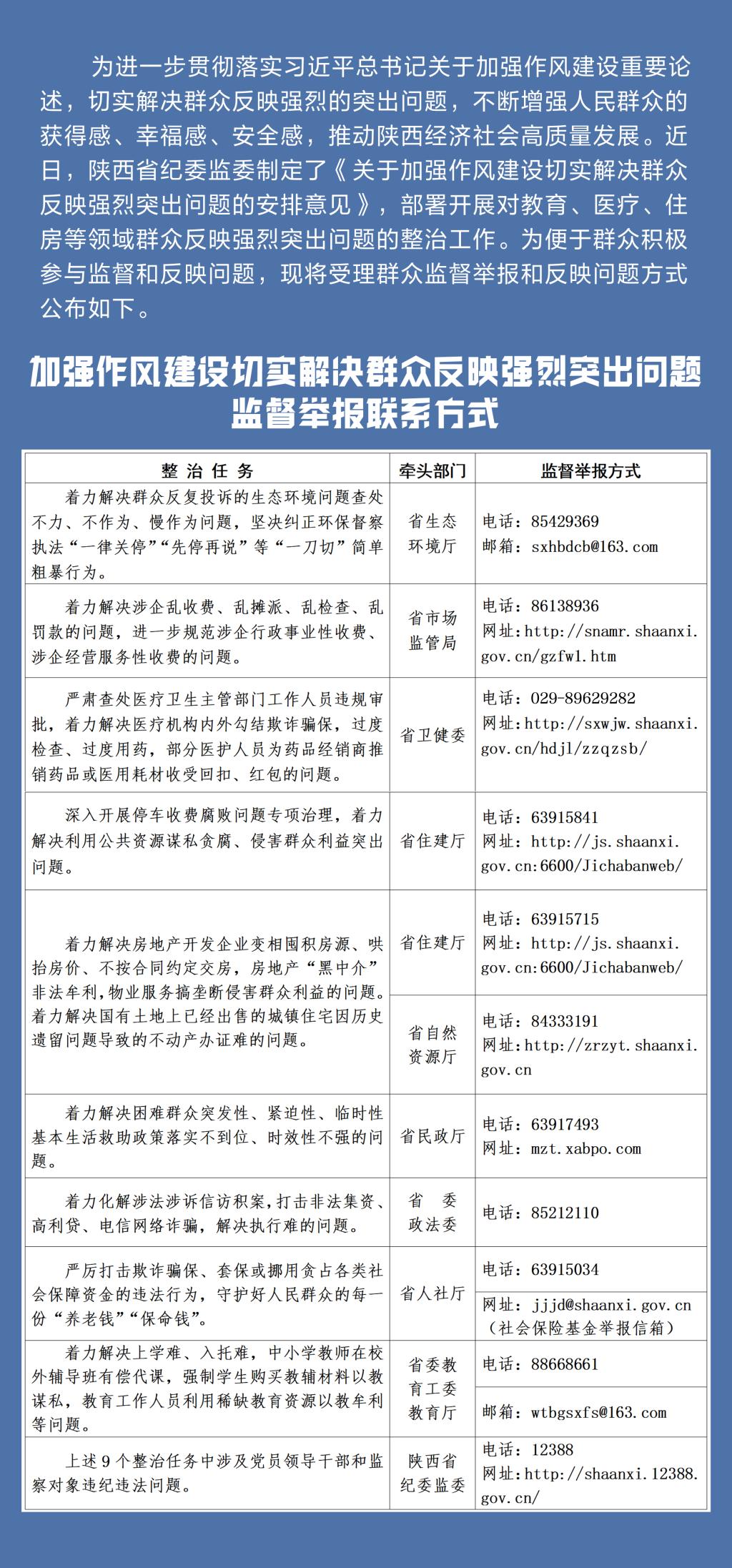 陕西省纪委监委公布加强作风建设切实解决群众反映强烈突出问题监督举报方式