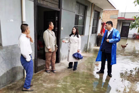 澄城县纪检监察干部在包联村入户查看汛情,宣传防汛安全知识。冯建文摄