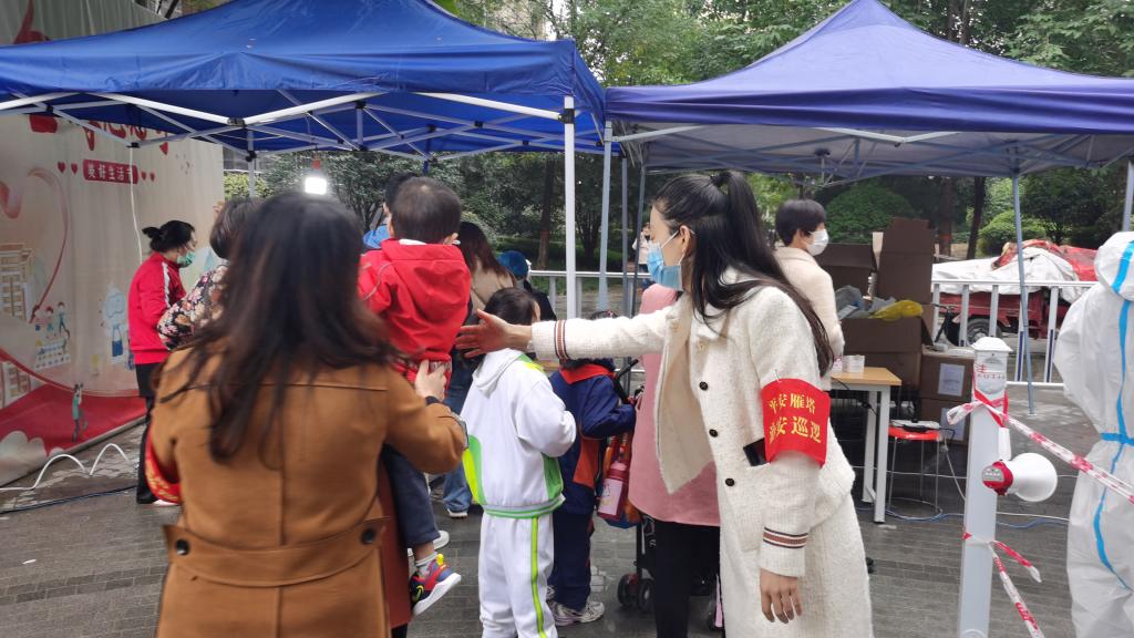 10月20日,在蒙蒙秋雨中,西安市雁塔区纪检监察干部闫云肖和同事一大早就赶到漳浒寨街道金辉悦府小区核酸检测点。