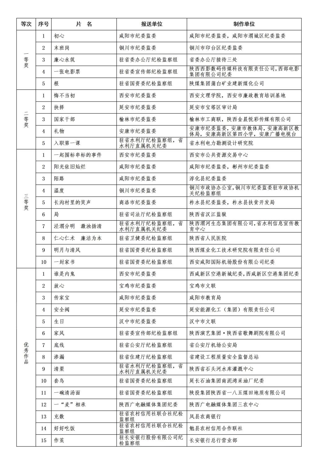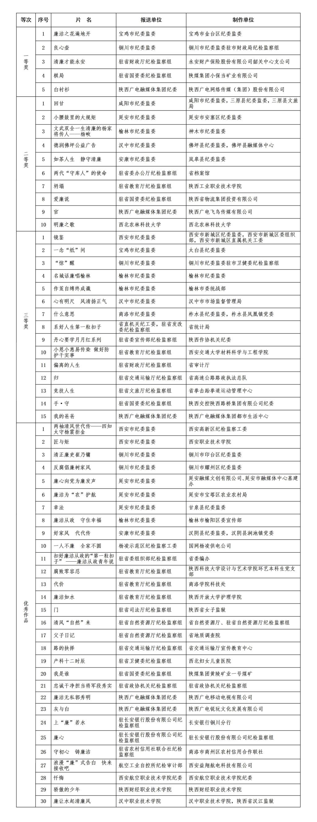 陕西省廉洁文化微电影微视频征集获奖作品名单