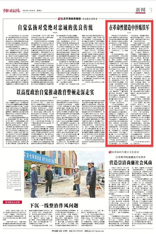 《中国纪检监察报》2023年4月28日第三版“扎实开展教育整顿·书记组长谈体会”栏目刊发陕西省委常委、省纪委书记、省监委主任王兴宁署名文章《在革命性锻造中淬炼铁军》,现予以全文转载。