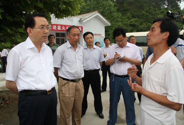 郭永平书记在西乡县沙河镇星火村视察村民监督委员会制度落实情况。