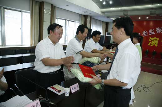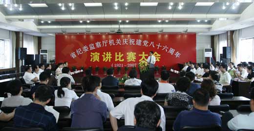 6月28日下午,省纪委、监察厅机关举行委厅机关庆祝中国共产党成立八十六周年演讲比赛活动,省委常委、省纪委书记郭永平等委厅领导以普通党员的身份参加了演讲比赛活动。各党支部党员代表紧紧围绕机关正在开展的学习贯彻省委《关于进一步加强领导干部作风建设的若干意见》、进一步加强机关作风纪律教育整顿活动和“做党的忠诚卫士、当群众的贴心人”、“保持先进性、建功‘十一五’”主题实践活动,以演讲的方式歌颂了中国共产党建党八十六周年以来取得的丰功伟绩。省纪委副书记纪相忠同志代表委厅领导讲话,省直工委副书记、纪工委书记杨正荣同志到会指导,并对演讲活动给予了充分肯定。
