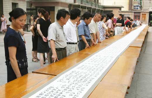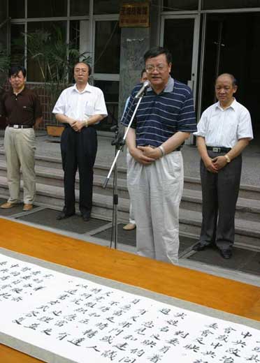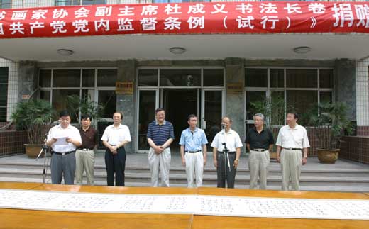 6月29日上午,陕西省知名书法家、西安市国税局纪检组组长杜成义将长54米、宽0.82米的《中国共产党党内监督条例》大楷书法作品捐赠给省档案馆收藏,为党的83华诞献上了一份特殊礼物。