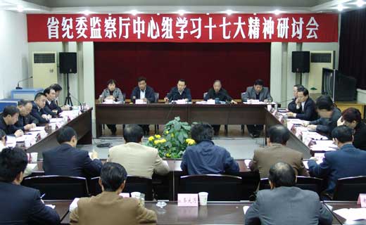 10月30日,省纪委、监察厅中心组召开专题研讨会,集中学习十七大精神。省委常委、省纪委书记郭永平强调,要科学分析、准确把握当前党风廉政建设和反腐败斗争的形势,切实加强制度建设,努力开创我省反腐倡廉工作新局面。