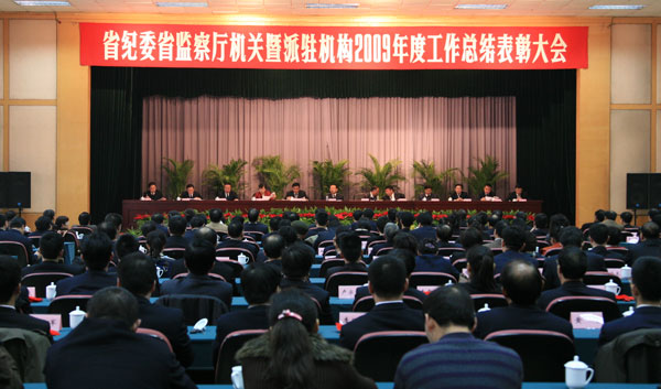 2月25日上午,省纪委、省监察厅召开会议,对2009年度省纪委、监察厅机关及派驻机构优秀党支部、文明室处和优秀党员、优秀公务员优秀工作人员进行表彰。省委常委、省纪委书记郭永平强调,最近中央印发的《中国共产党党员领导干部廉洁从政若干准则》,是规范党员领导干部从政行为的重要基础性党内法规。全省各级各部门要认真组织学习,领会精神实质,采取有力措施,切实抓好《廉政准则》的贯彻落实,促进党员领导干部廉洁从政。省纪委、省监察厅领导龚汉江、纪相忠、张毅民、魏燕、岳崇、王晓斌、贠军、郭润芝、高山、高霄、马奔出席会议。