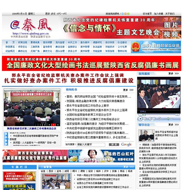 最近,由中央纪委宣教室、中央外宣办网络新闻宣传局联合组织的反腐倡廉网上宣传工作先进评选活动揭晓,“秦风网”站荣获全国“纪检监察系统十佳互联网站”。