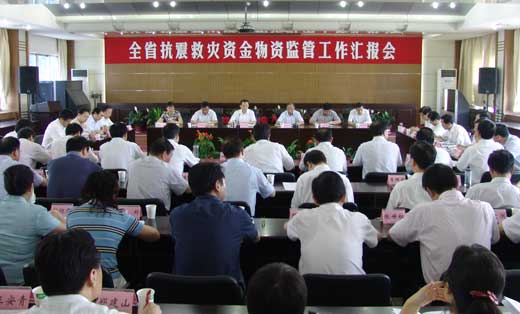 汇报会上,省审计厅通报了开展抗震救灾资金物资审计工作情况,就下一步审计工作重点作了安排部署。汉中市、宝鸡市、宁强县的负责同志分别就加强抗震救灾款物的监管作了发言,回顾了前一阶段的工作,提出了下一步的工作安排。