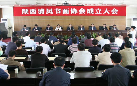 4月14日下午,陕西清风书画协会在西安召开成立大会暨第一次会员代表大会,省委常委、省纪委书记郭永平,省纪委副书记、省监察厅厅长龚汉江,省纪委副书记魏燕,省监察厅副厅长岳崇,省纪委常委高山,省纪委秘书长、省监察厅副厅长马奔,省文化厅党组成员、纪检组长李延军,省民政厅民间组织管理局副局长张波等出席会议。