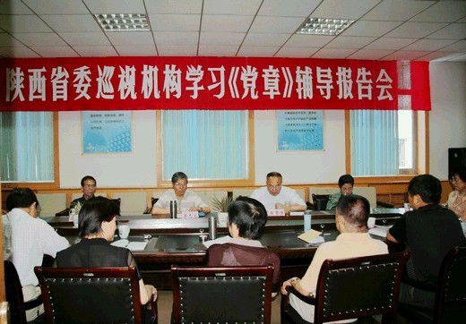 6月26 日,陕西省委巡视机构召开学习《中国共产党章程》辅导报告会,省委巡视工作办公室主任陈有德同志作了题为《认真学习贯彻党章,推动巡视工作深入开展》的辅导报告。省委巡视组组长李天文、高存德、丁芙英和各巡视组副组长、巡视机构其他党员干部共同听取了辅导报告。