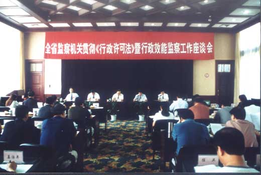 2004年7月22日至23日,陕西省监察机关贯彻《行政许可法》暨行政效能监察工作座谈会在榆林召开,来自全省纪检监察机关负责执法监督检查和行政效能监察工作的60多人参加了会议。