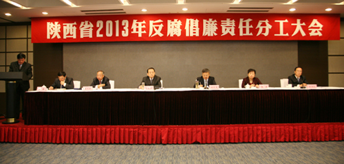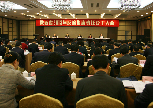 3月5日,全省2013年反腐倡廉责任分工大会在西安召开。省委常委、省纪委书记郭永平强调,要正确认识当前反腐败斗争的形势,抓住关键环节,加强组织领导,确保党风廉政建设责任制落实取得实效。副省长祝列克主持会议。