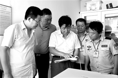 神木市纪委监委第五执纪监督室、派出工交能化系统纪工委干部对驻在部门开展日常监督,查看计量站工作人员拉煤票据情况。 王文睿 摄