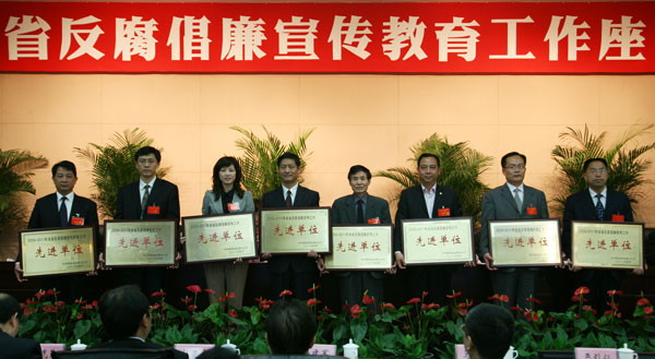 会议对2009至2011年全省反腐倡廉宣教工作先进单位和个人进行了表彰。西安市纪委、渭南市纪委、省地税局等7个单位在会上介绍了各自的工作经验。