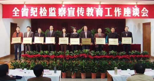 会上,延安市等四家单位的纪检监察工作负责人结合各自工作实际介绍了加强反腐倡廉宣传教育工作的经验和体会。会议还对2007年度全省纪检监察宣传教育工作先进单位和先进个人进行了表彰,本报政治要闻部获反腐倡廉宣传工作专项奖。