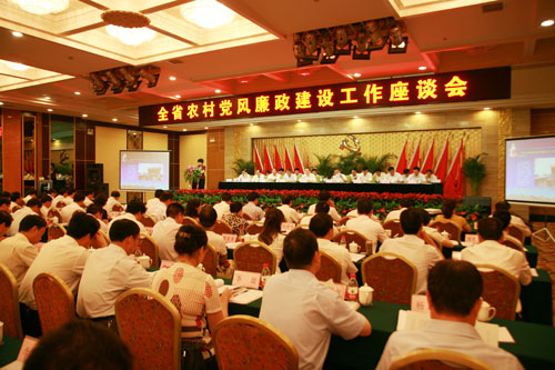 8月5日,全省农村党风廉政建设工作座谈会在咸阳召开。省委常委、省纪委书记、省农村党风廉政建设联席会议第一召集人郭永平强调,各级党委、政府要把深入贯彻落实中共中央办公厅、国务院办公厅下发的《农村基层干部廉洁履行职责若干规定(试行)》作为当前和今后一个时期加强农村党风廉政建设的重大任务,加强领导,提出要求,明确责任,抓好落实,切实维护民权民利。省政府副省长、省农村党风廉政建设联席会议第二召集人祝列克主持会议。