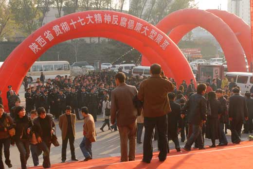 由省纪委、监察厅牵头主办的这次展览共分三个展区,中间是主展区,周围是市区和省直部门展区,还有一个影视互动展区。4000多平方米的展览面积、468块展板、近3000幅图片、10多万文字、300余件实物、50多个案例,既是十七大精神的生动再现,又是十六大以来我省反腐倡廉工作的全面回望,更是对广大党员干部的一次深刻教育。