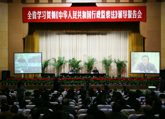 12月16日,省纪委、省监察厅在西安举办全省学习贯彻《行政监察法》辅导报告会。中央纪委法规室副主任侯觉非围绕新修订的《行政监察法》,结合新形势下政府廉政勤政建设和行政监察工作面临的新情况新要求,为大家作了生动细致的讲解。省纪委副书记、省监察厅厅长龚汉江主持报告会,省纪委、省监察厅领导纪相忠、魏燕、岳崇、郭润芝、高霄、马奔出席报告会。