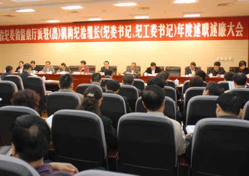 会上,派驻省政府办公厅等10个单位的纪检组长作了述职述廉,同时对各派驻机构纪检组长进行了大会测评。