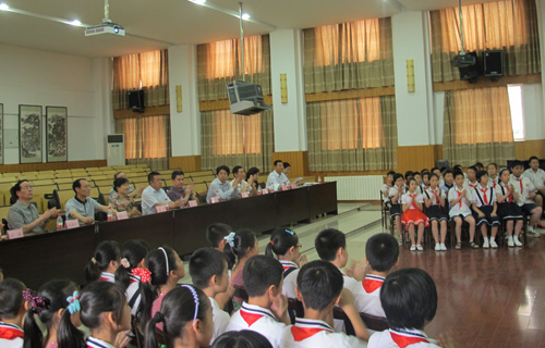 上午,魏燕、高山一行来到雁塔区大雁塔小学,参观了该校校园文化长廊、科学墙和校史展示室,观摩了该校五年级三班组织的“廉洁修身永不忘”主题中队会,查阅了廉政教育活动资料。最后在该校进行了廉洁文化进校园座谈。