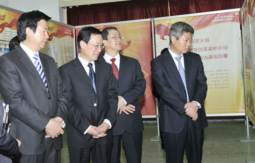 渭南市委书记庄长兴、市长徐新荣、市纪委书记郝宗友陪同省纪委常委郭润芝观看展览