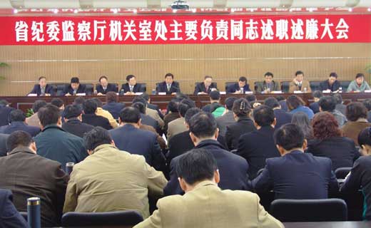 2月7日、8日,省纪委监察厅召开机关室处主要负责同志述职述廉大会。省委副书记、省纪委书记董雷在会上讲话时强调,要认真贯彻胡锦涛总书记在中纪委六次全会和春节期间在延安调研时的重要讲话精神,深入学习贯彻党章,切实转变作风,大兴求真务实之风,既敢于探索,勇于创新,又脚踏实地,埋头苦干,扎实工作,把党风廉政建设和反腐败斗争进一步引向深入,为巩固党的执政地位,为建设西部经济强省做出新的贡献。