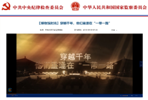 我市精心制作的“一带一路”系列专题片之《穿越千年他们重逢在“一带一路”》获中央纪委网站首播截图。