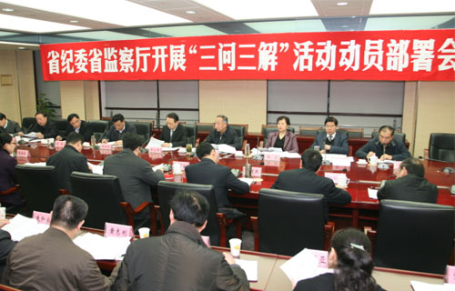 会议审议通过了《关于在全省纪检监察系统开展“三问三解”活动的意见》和《关于委厅领导班子开展“三问三解” 调研活动全面检查反腐倡廉制度建设落实情况安排意见》。按照安排,省纪委、省监察厅近日将派出11个检查调研组,深入全省11个市区,重点对开展“三问三解”活动和省纪委近年来推出的13项反腐倡廉制度落实情况进行集中调研检查。