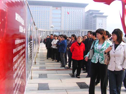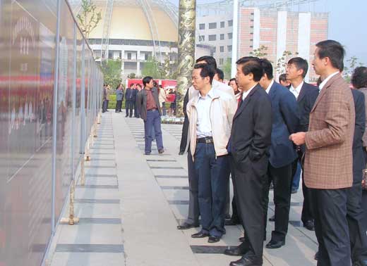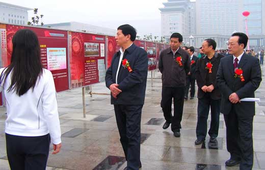 开展仪式结束后,市党政领导与市委办、政府办等30个市级部门的数百名干部以及群众一起认真观看了展览。