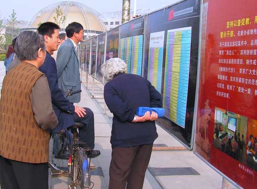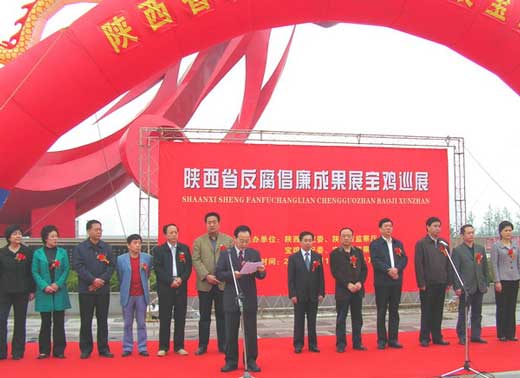 4月14日,全省反腐倡廉成果展宝鸡巡展在市行政中心广场开展。市委书记唐俊昌、市政协主席张民义、市委副书记闫超英以及在宝的市委常委、市人大、市政府、市政协、市纪委领导出席开展仪式并观看展览。