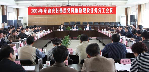 3月19日上午,2009年全省农村党风廉政建设任务分工会议在省纪委召开。省农村党风廉政建设联席会议各成员单位负责同志、各市(区)纪委分管领导和党风室主任、省纪委机关相关室处领导共68人参加会议。会议由省纪委常委、省农村基层党风廉政建设联席会议办公室副主任刘长楼同志主持,省纪委副书记、省农村基层党风廉政建设联席会议办公室主任纪相忠同志出席会议并作了重要讲话。