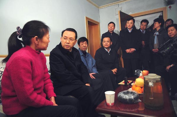 随后,郭永平看望了困难职工周惠琴和梁希武,向他们表示节日的问候。在周惠琴家里,郭永平关切询问了她家的生活情况后说,新春佳节就要到了,我们今天提前给你们全家拜个早年,并叮嘱她一定要让孩子好好读书,长大成为国家有用之才。梁希武的妻子常年有病,家庭生活十分困难。郭永平说,你为企业发展做了很多贡献,现在生活遇到困难,我们会帮你度过难关,希望你树立信心,继续关心支持企业发展。他还对在场的省、市有关部门领导说,我们一定要把职工的冷暖放在心上,帮助他们解决实际问题,安排好职工的生活,使大家过一个祥和的春节。