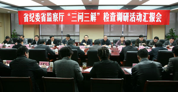 3月20日上午,省纪委、省监察厅召开常委扩大会议,听取“三问三解”检查调研活动的汇报。省委常委、省纪委书记郭永平强调,要充分运用好这次“三问三解”调研检查活动的成果,联系实际,深化提升,进一步提高反腐倡廉制度建设科学化水平。