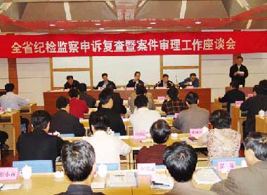 2004年9月9日至10日,由省纪委案件审理室组织的全省纪检监察申诉复查和案件审理工作座谈会在宝鸡眉县召开。各市(区)纪委、监察局分管审理工作的副书记或常委、审理室主任,省上有关单位纪检组负责同志参加了会议。省纪委副书记马文新同志和省纪委常委滑展秀同志到会并作了重要讲话。中纪委审理室派员参加了会议,传达了中纪委副书记刘峰岩同志有关讲话精神,并对我省申诉复查和案件审理工作给予了充分肯定。