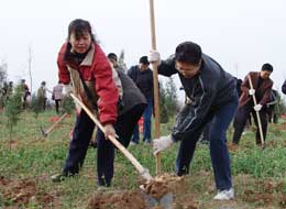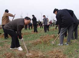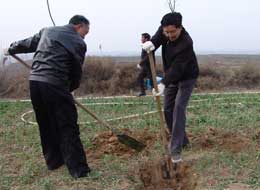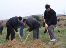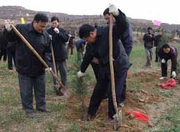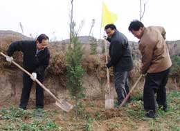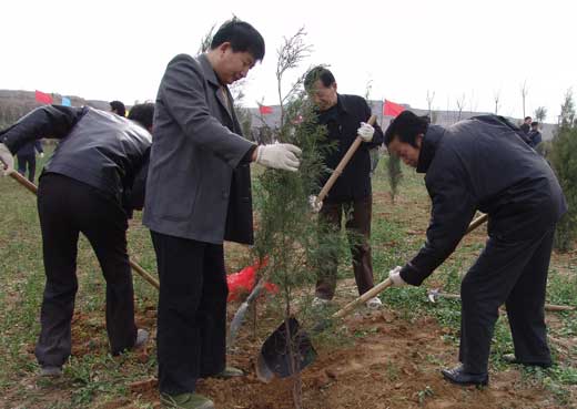 3月12日植树节这天一大早,省纪委监察厅领导陈有德、张启钧、马文新、纪相忠、张毅民、龚汉江、滑展秀、魏燕和机关40余名干部职工一起来到泾阳县生态治理示范区参加义务植树活动。 委厅领导一到植树地点,就热火朝天地干了起来。大家纷纷抡镢扬锨挖坑、放树苗、埋土,不到一个小时就完成分配的植树任务。
