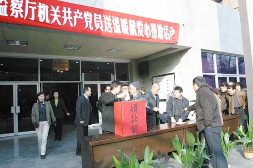 为响应胡锦涛总书记倡导的开展向困难群众送温暖、献爱心活动的指示精神,根据《中共陕西省委办公厅、陕西省人民政府办公厅关于在省级部门和单位全体党员中开展送温暖、献爱心活动的通知》要求,省纪委、省监察厅机关举行全体党员干部向困难群众送温暖、献爱心捐助活动。
