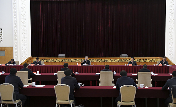 4月18日至21日,中共中央政治局常委、中央纪委书记赵乐际到甘肃调研。这是4月20日,赵乐际在兰州市主持召开广西、四川、贵州、云南、甘肃、宁夏、新疆七省区纪委书记座谈会。新华社记者 丁海涛 摄