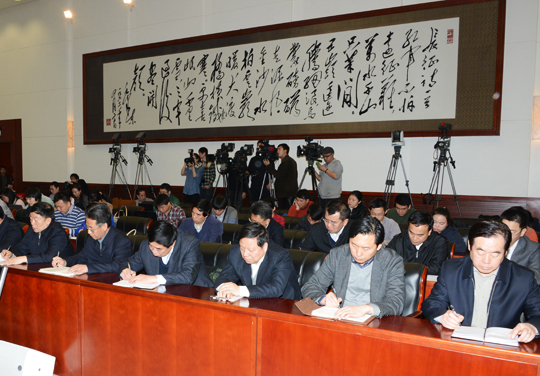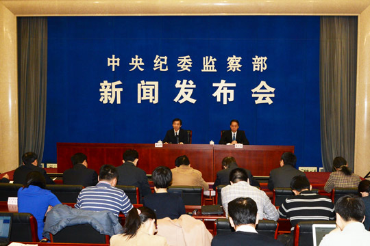 图为中央纪委监察部2013年度新闻发布会现场