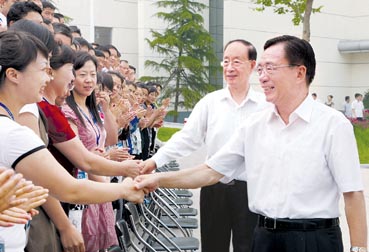 7月29日上午,贺国强、何勇以及中央纪委监察部有关领导同志特地来看望大家、听取大家的意见建议。一见到来自祖国西部边疆民族地区的基层纪检监察干部,贺国强就亲切地与他们握手,关切地询问他们来自什么地方?在纪检监察机关工作了多长时间?家乡的情况怎么样?在北戴河是否习惯?贺国强在认真听取了学员代表发言后说,同志们工作在西藏、新疆和新疆生产建设兵团纪检监察工作第一线,自然条件比较艰苦,工作难度比较大。大家在艰苦的环境下,承担着繁重任务,兢兢业业,默默无闻,出色地完成了本职工作,做出了重要贡献。中央纪委监察部特地邀请大家来北戴河培训休养,就是想让大家调整一下身心,放松一下心情,同时学习一些知识,扩展一下视野,更好地投入工作。他叮嘱有关负责同志要安排好大家的学习、照顾好大家的生活。